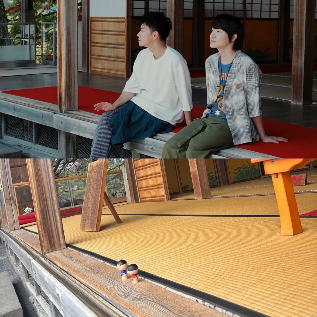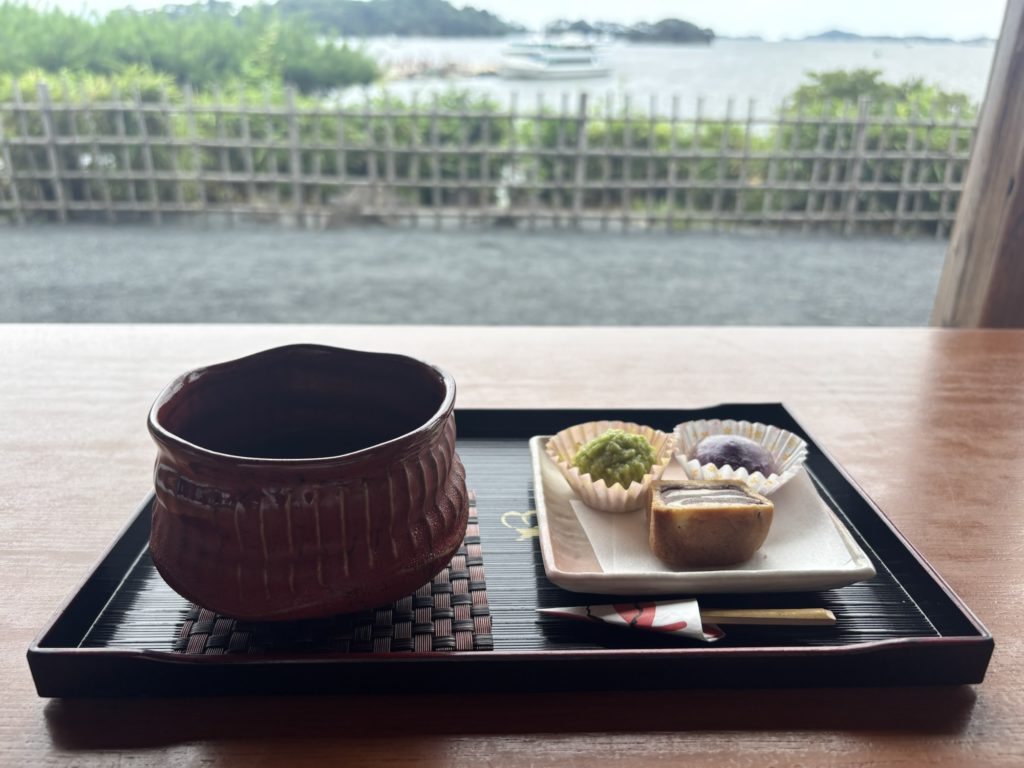 松島・観瀾亭の縁側でお茶を飲みながらゆったり休憩。
